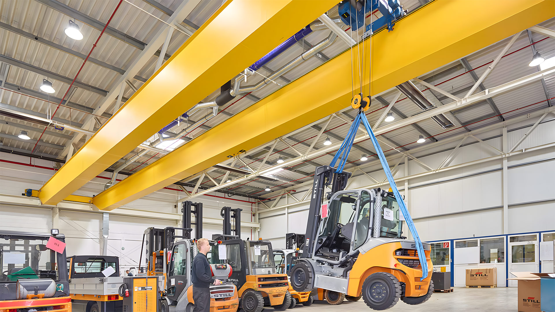 QD型通用橋式起重機(jī),由箱型橋架、大車運(yùn)行機(jī)構(gòu)、小車、電氣設(shè)備等部分構(gòu)成;本產(chǎn)品具有適應(yīng)多種場地的工作特點(diǎn);另外,該機(jī)全部機(jī)構(gòu)均在操作室內(nèi)操縱,且操縱室內(nèi)視野開闊;露天使用時,需增加防雨設(shè)備。根據(jù)用戶要求可以選用遙控或線控操作。